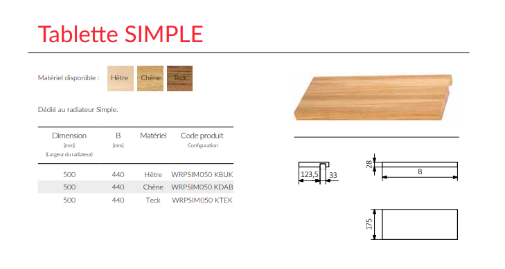 Tablette bois massif 50 cm pour Simple et Simple DW (voir photos produit)