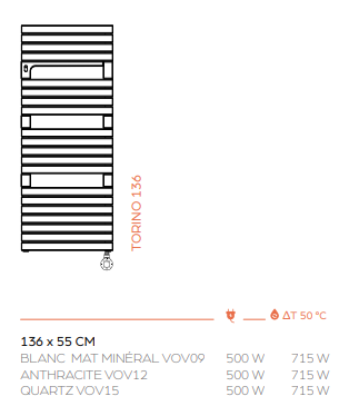 Inclus avec Torino électrique : radiateur Torino livré prêt à être installé avec le thermostat SMART Plus - kit de 4 supports dans la couleur du radiateurs - instructions de montage et mode d'emploi.